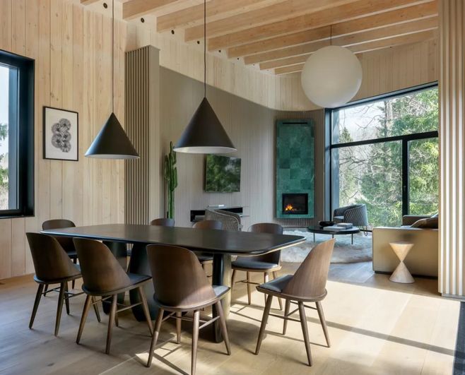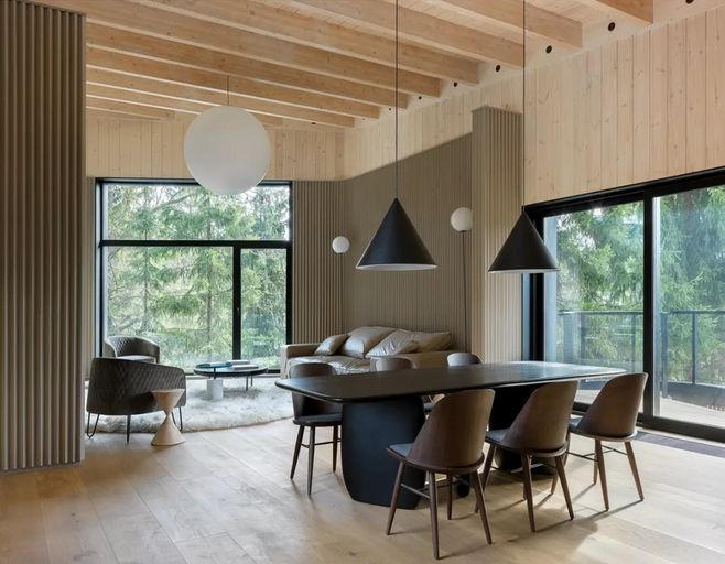 原木质量适用于房间的每个部分,铺设在天花板和木地板上,无懈可击的温暖色调遍布大面积显示自然纹理和纹理,客厅设计将具有现代感的华丽感,结合舒适的自然田园环境,原始的木质家具具有一些自然的魅力。