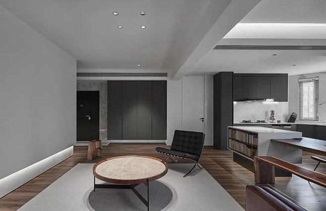 对于简约风格的家居设计尤其如此。灰色的阴影是不同的,简单,低调但层层叠叠,并在地面上使用大面积的木材颜色,使整个空间不会显得太暗。透明的灯光使原本凉爽的家居变得格外明亮,再加上底板上的灯条设计,不仅扩大了空间感,还给人一种生动的视觉体验。
