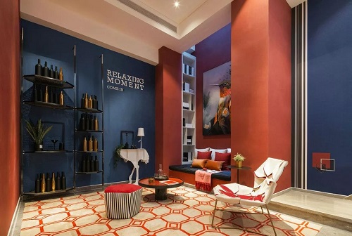 设计师将个性和生活方式以及空间需求作为主要灵感,就像这里蓝与红比照出的热烈与清凉,一下子让空间有了戏剧性。让音乐与酒香环绕,纯粹、简单、清新的设计,带着亲近自然的姿态。带来一种更绚烂的生命热情!让生活包围在激情、乐观和幽默之间。