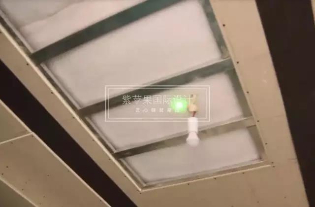 如果选择了紫苹果,其实就不用考虑上面的问题,因为紫苹果国际设计的隔音工艺获得过国家专利,专门解决隔音问题,先来看看吊顶隔音工艺消音处理