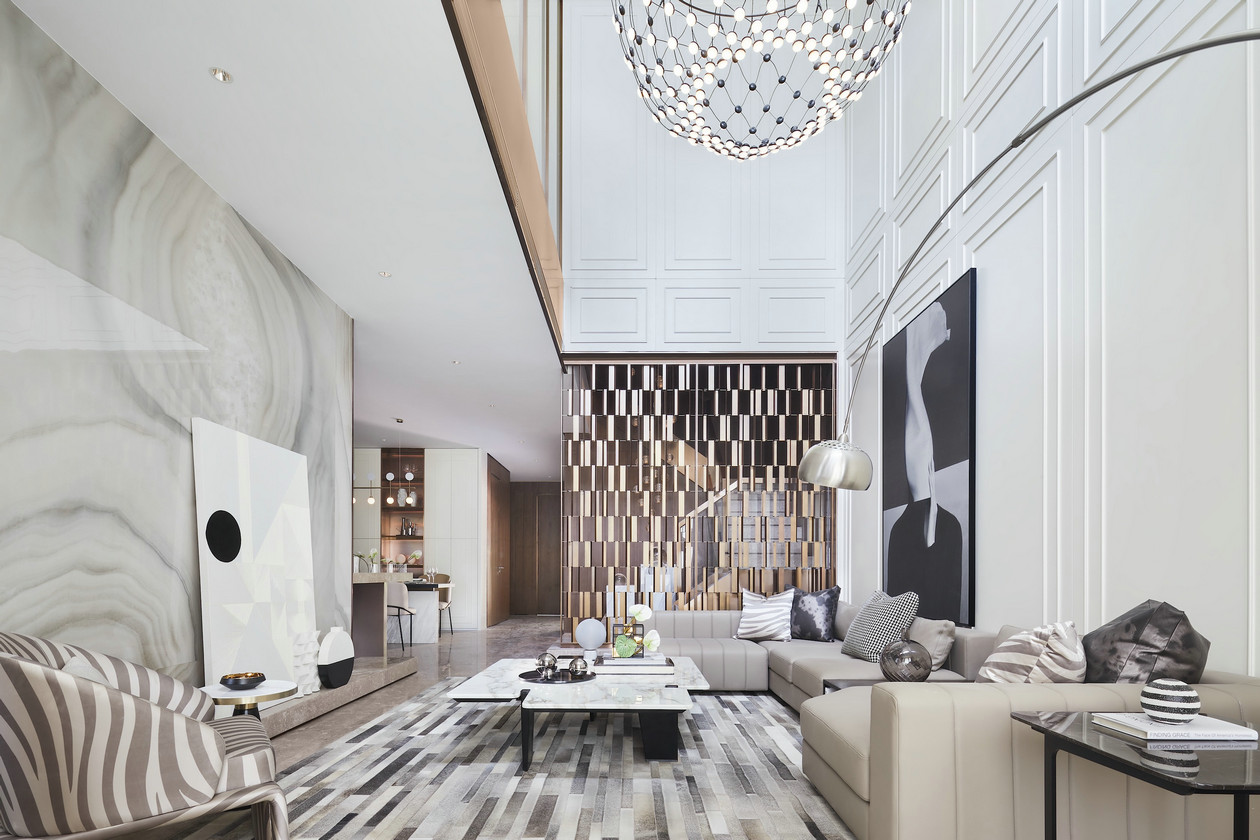 选择天花颜色的时候,大部分的人都是选择与墙壁为同一色相,但是明度不同的色彩,这样能够让空间从上到下有层次感。此外,也可以选择与墙壁不同的白色,白色在空间中通常有扩展空间的视觉效果,如果选择白色可能会让空间变得空荡起来。