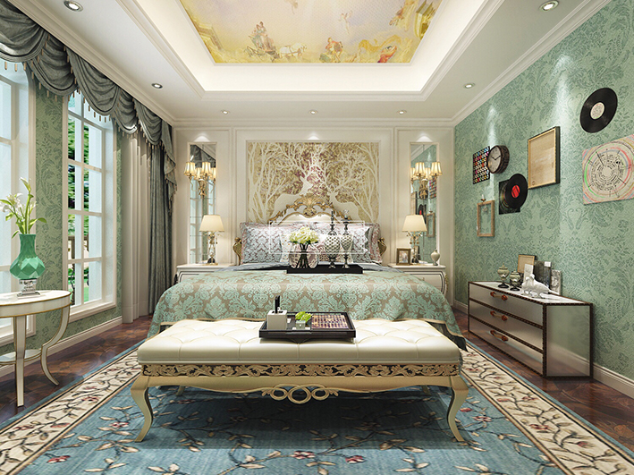 风格特点:一些比较有特色的墙纸,比如画有圣经故事以及人物等内容的墙纸。另外,油漆图案可以烘托风格气氛。