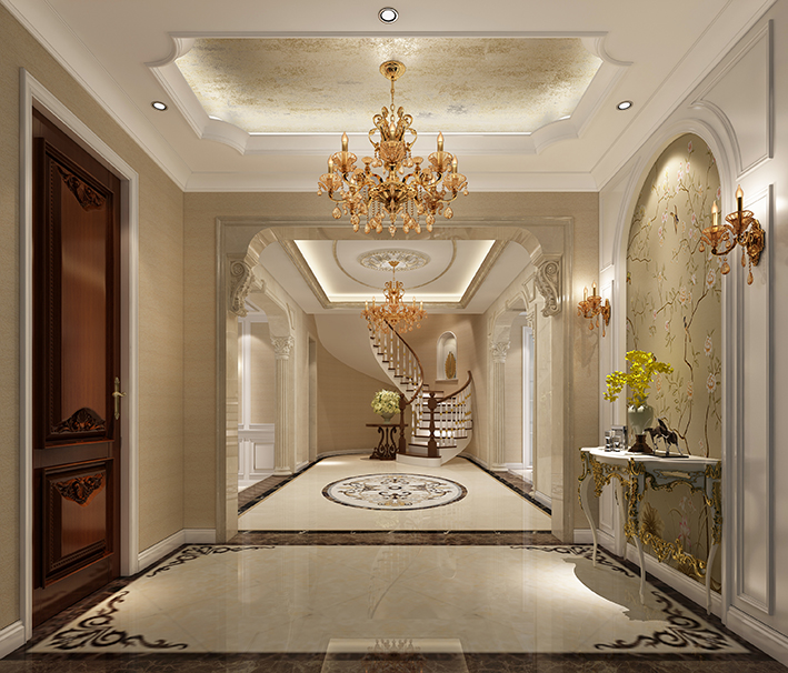 别墅玄关的间格要适中,一般以两米高度为最合适,如果玄关的间格太高,会给人一种压迫感,如果太低,会没有装饰效果。