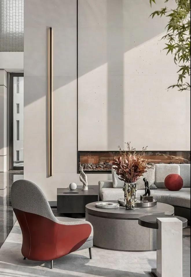 灰色是最包容的颜色,绝大数色彩都可以和灰色搭配,如果室内整体运用高级灰的色调,则能够营造出一种优雅精致的室内氛围,又有精英主义的克制感。灰度空间给予人以安全感并带来冷静的思考,临近色彩的调配加以色温的改变传递视觉愉悦,没有比气质更能打动人心了,空间设计亦是如此。