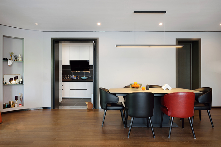餐桌的选择需求注意与空间大小配合,小空间配大餐桌或者大空间配小餐桌都是不合适的,混迹装修行业多年的小紫建议在餐厅装修的时候先测量好所喜好的餐桌尺寸后,拿到现场做这个全份额的比较,这样会比较合适,可避开过大过小。