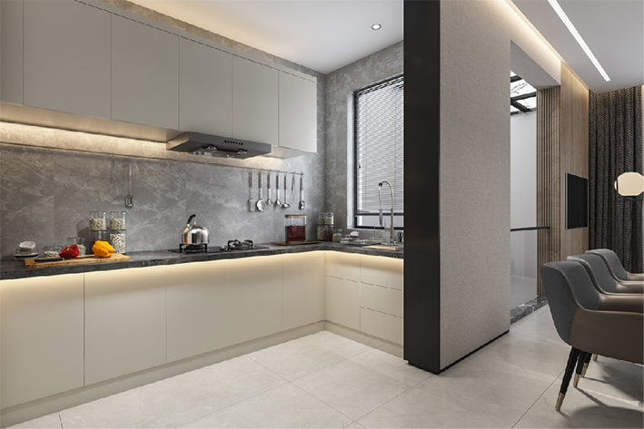 有型有颜,还落落大方,嵌入式的设计让橱柜成功将各大厨电隐身,没有了各种插头,线路,厨房更显整洁、干净。而厨电和橱柜的风格统一,让厨房在相同面积的情况下,变大变美变舒适!