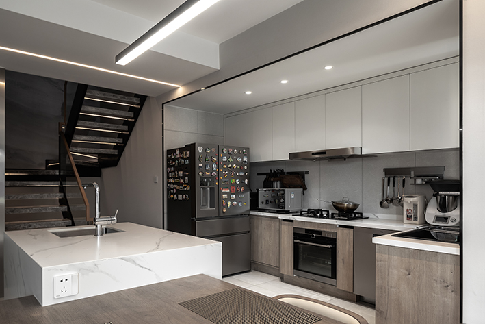 宽敞的阳台空间,被打造成了介于室内与室外之间的魅力区域,客厅、餐厅、厨房,都可以在这儿觅得,没有窗体,仍由微风吹入,但进口处的隔断处理,却十分必要,为了不让其太生硬,布艺软隔断仿佛是最佳之选。