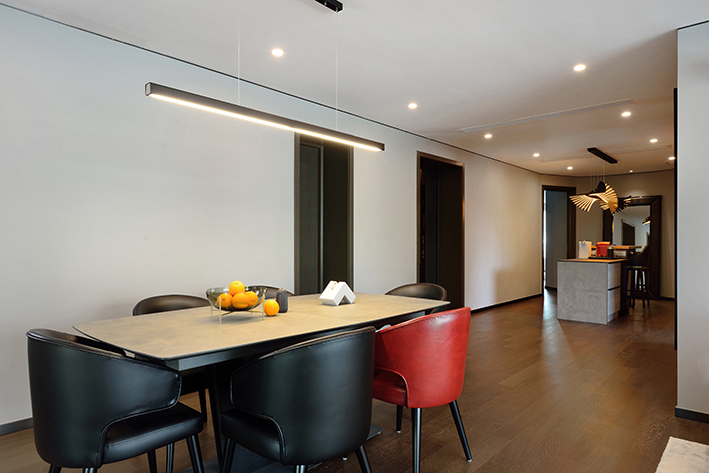 很多横厅的书房设计,书桌往往充当一个隔断的作用,所以它的设计,既要是书桌,也要有隔断作用。