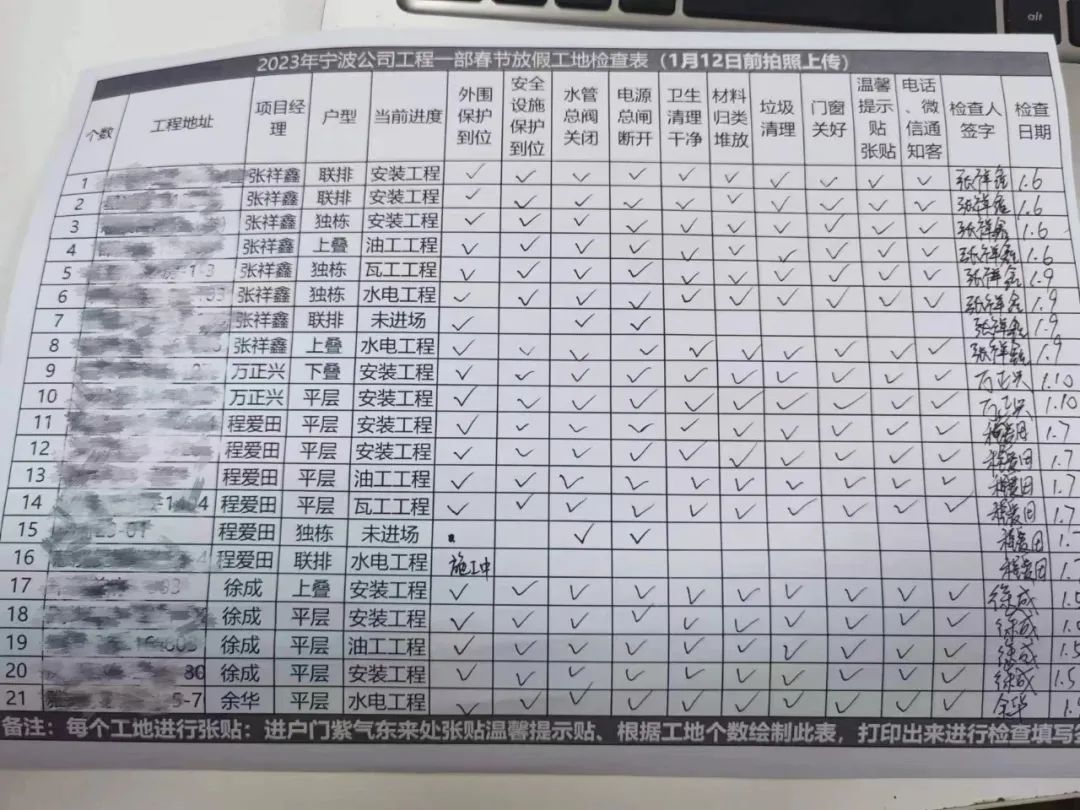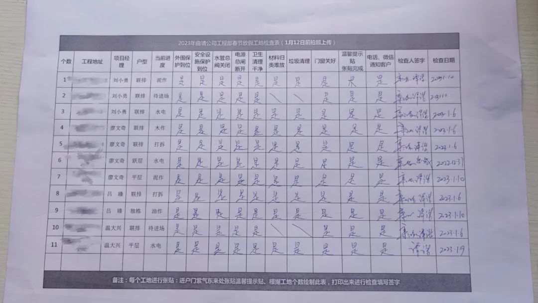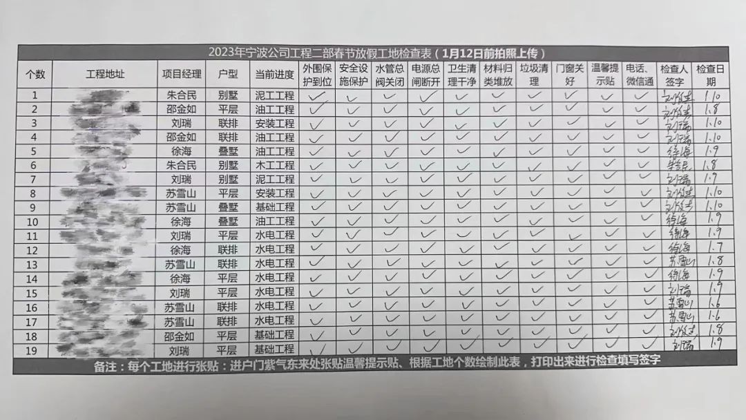 会严格按照《春节放假工地检查表》进行检查,