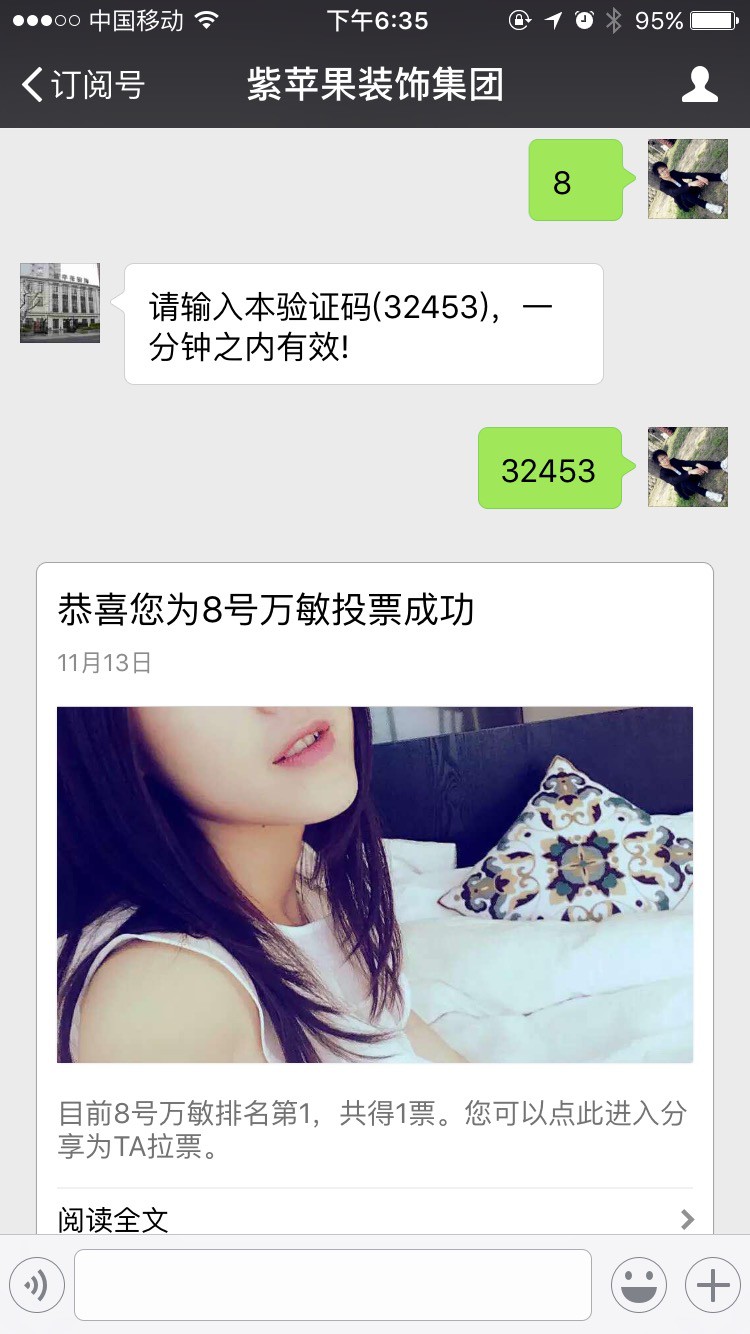 第三步:直接在公众号里回复选手编号(如下)按照提示投上你的关键一票!