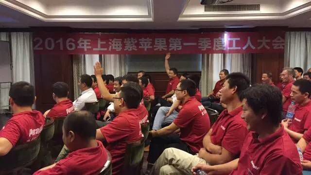 6月7日,粽叶飘香的时节,紫苹果上海公司召开第一季度工人大会。本次大会的主要内容是对工人师傅进行工艺标准培训,颁发杰出匠人奖,以及为工人师傅们送上节日的问候。