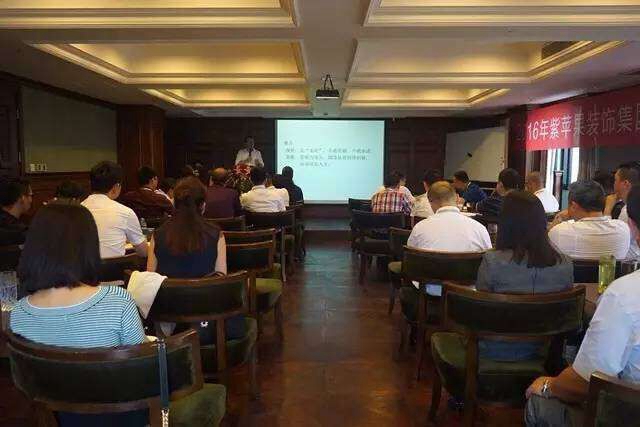 会议开始,紫苹果董事长李忠文先生进行战略分析及下季度工作部署。2016年,各公司在品质及口碑上取得良好的成果,李董表示,未来将持续加强工程品质,以“匠心铸就精品”为战略导向,用有竞争力的施工设计品质赢得市场,赢得更多消费者信任。