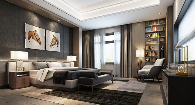 3、卧室一般会比客厅更低矮平和,选材上也大多是选择比较舒适、柔性、温馨的材质组合,这样可以让家看起来更加的温馨,对于卫生间的设计比较注重功能,当然安全方便是最先考虑的因素。