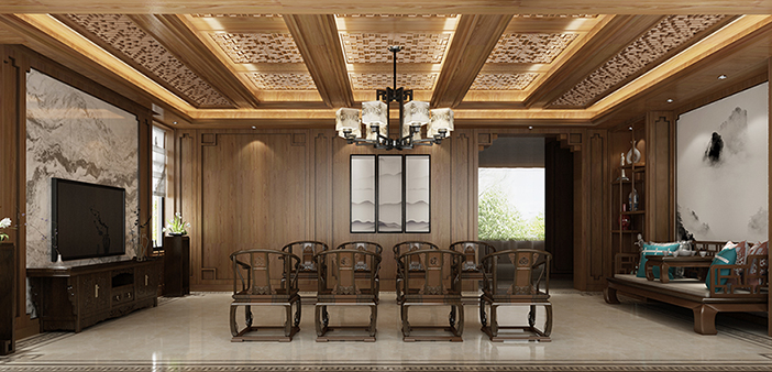 中式装饰材料以木质为主。讲究雕刻彩绘、造型典雅。多采用酸枝木或大叶檀等高档硬木,经过工艺大师的精雕细刻,每件作品都有一段精彩的故事。而每件作品都能令人对过去产生怀念,对未来产生一种美好的向往。色彩以深色沉稳为主。因中式家具色彩一般比较深,这样整个居室色彩才能协调。