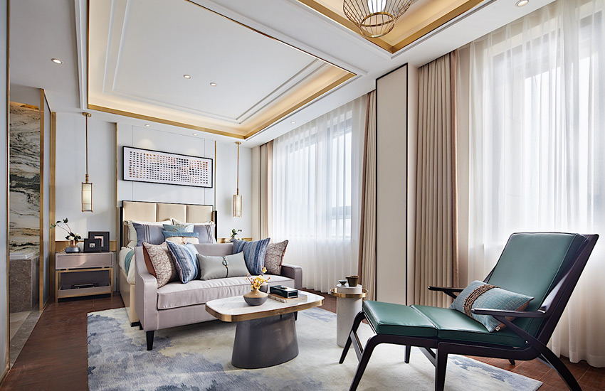 新中式设计风格,结合传统与现代元素,并将其有机结合一体。新中式一般以灰、白、黑为主色调,其中也灵活地融入红、绿、黄、蓝等颜色点缀、补充,以素雅为整体的效果所在,让居住者感受到一种温暖和舒适。