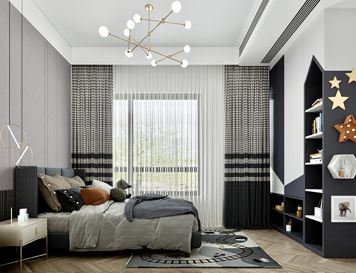 因此,噪音较大的房间,可以多用一些棉麻材质的软装,比如棉麻窗帘、表面粗糙的挂毯、地毯等等。