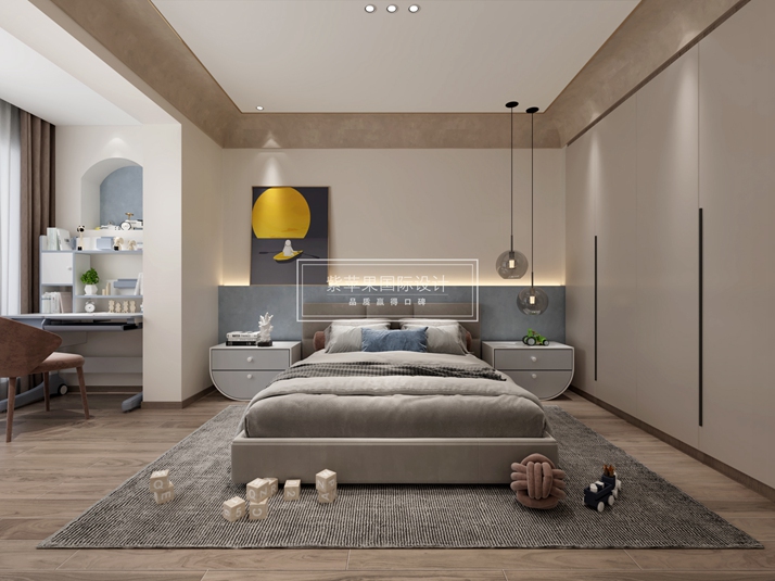 这个时期的孩子活泼好动,想象力很丰富,家长们可以尽量提供更多的整块活动空间,例如:在儿童房的中间区域,不用放太多的家具,但是儿童房墙绘可以使用多一点的颜色,让孩子的想象空间变得更丰富。【预约参观工地】