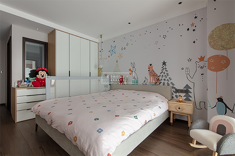 其次,儿童房的装修应注重功能性和实用性。儿童房是孩子们的私人领域,他们需要一个能够满足他们各种需求的空间。在装修过程中,要考虑到孩子的年龄和兴趣,设置合适的家具、储物系统和活动区域。例如,低矮的书架、易于清理的地板材料和适当的储物空间都是提高儿童房功能性的重要因素。同时,尽量避免使用过于复杂或易碎的装饰品,以确保孩子们的安全。【预约免费量房】