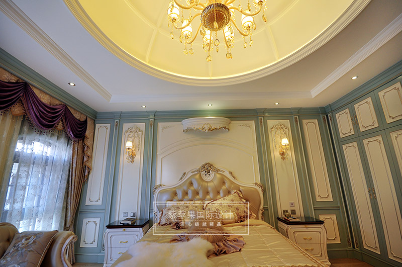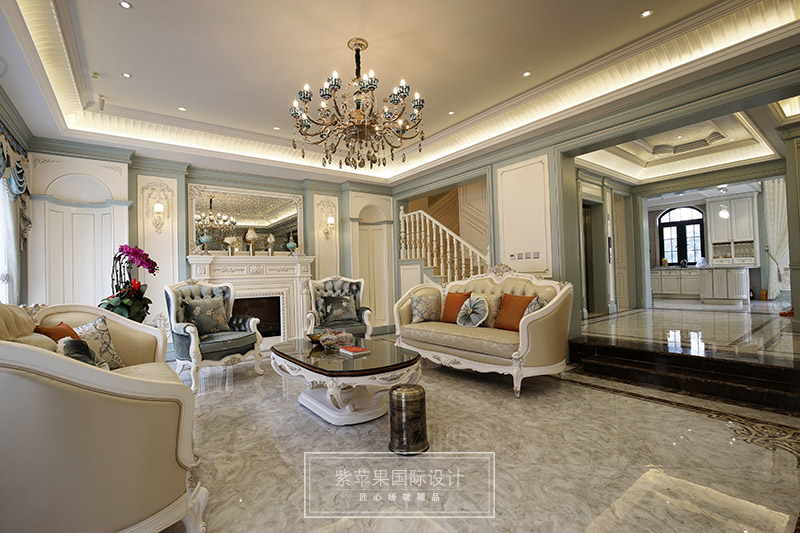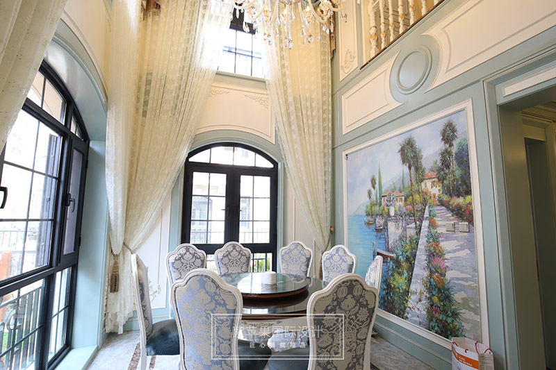 【紫原创-装修实景】布局上突出轴线的对称,恢宏的气势,注重居室空间的豪华舒适;细节处理上运用法式廊柱、雕花、线条,制作工艺精细考究;崇尚冲突之美,均是法式风格的特色。