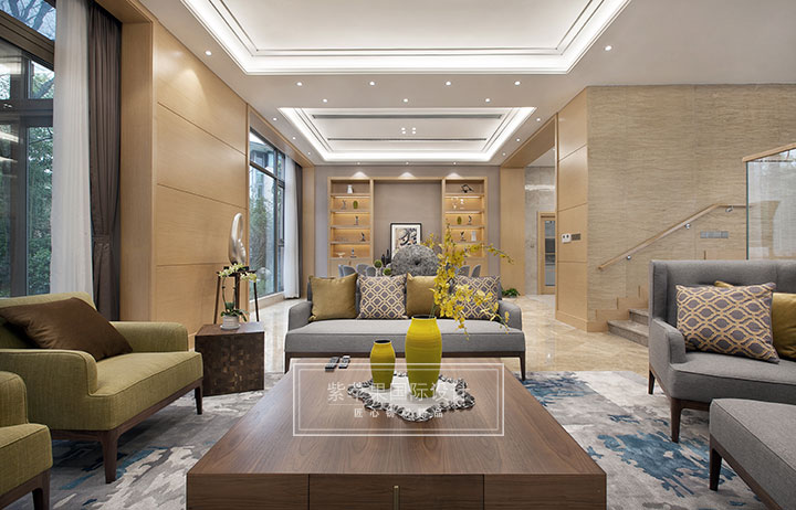 布置简洁,会客室的地面采用的地毯,展现一个休闲的氛围。