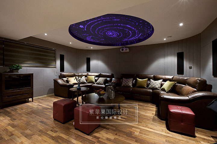 半地下室规划出来的影音空间,配备音响设备后业主在家就可以享受超于影院的视听享受,设计师对音响设备的隐藏和便于检修都颇费心思,让整个空间看起来更加美观,井然有序。同时设计师为这个别墅配置新风、地暖、净水、防盗、中央空调等设备,确保业主舒适生活最大化。