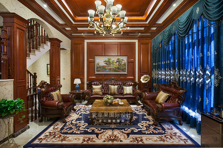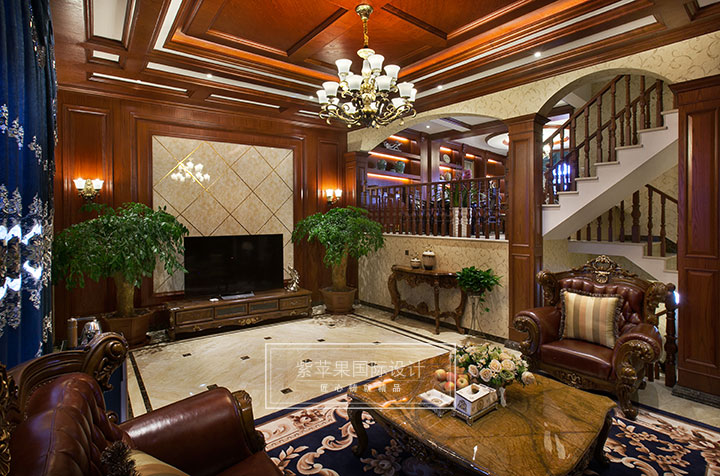 【紫原创-装修实景】本案在平面布置上从多角度去分析空间的合理性、实用性,通过对建筑结构进行合理的建议,找到空间更优越的扩展性,整个概念设计以美式古典为主题,将厚重、高端、古典、奢华诠释出精品住宅空间,创造了一种满载浪漫与奢华的生活韵味。
