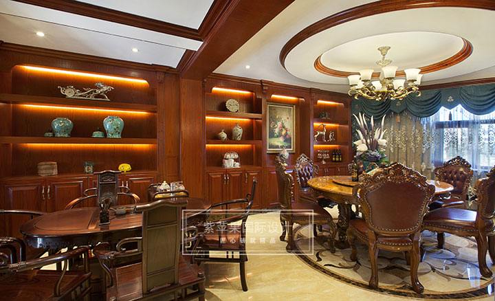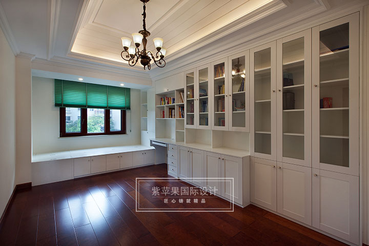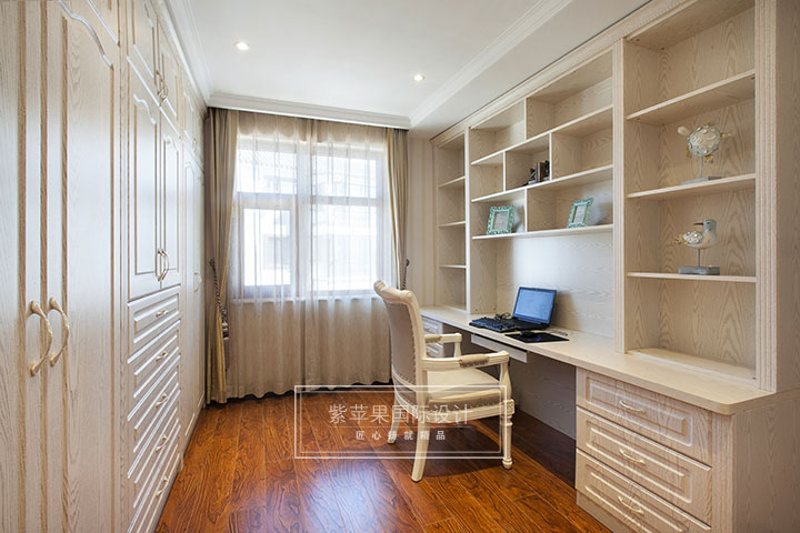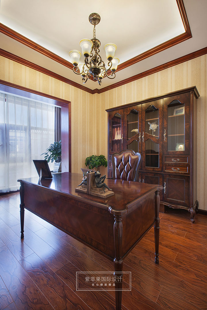 书房采用实木地板,走进书房,就能感受到高贵的深色调与厚重的格调。