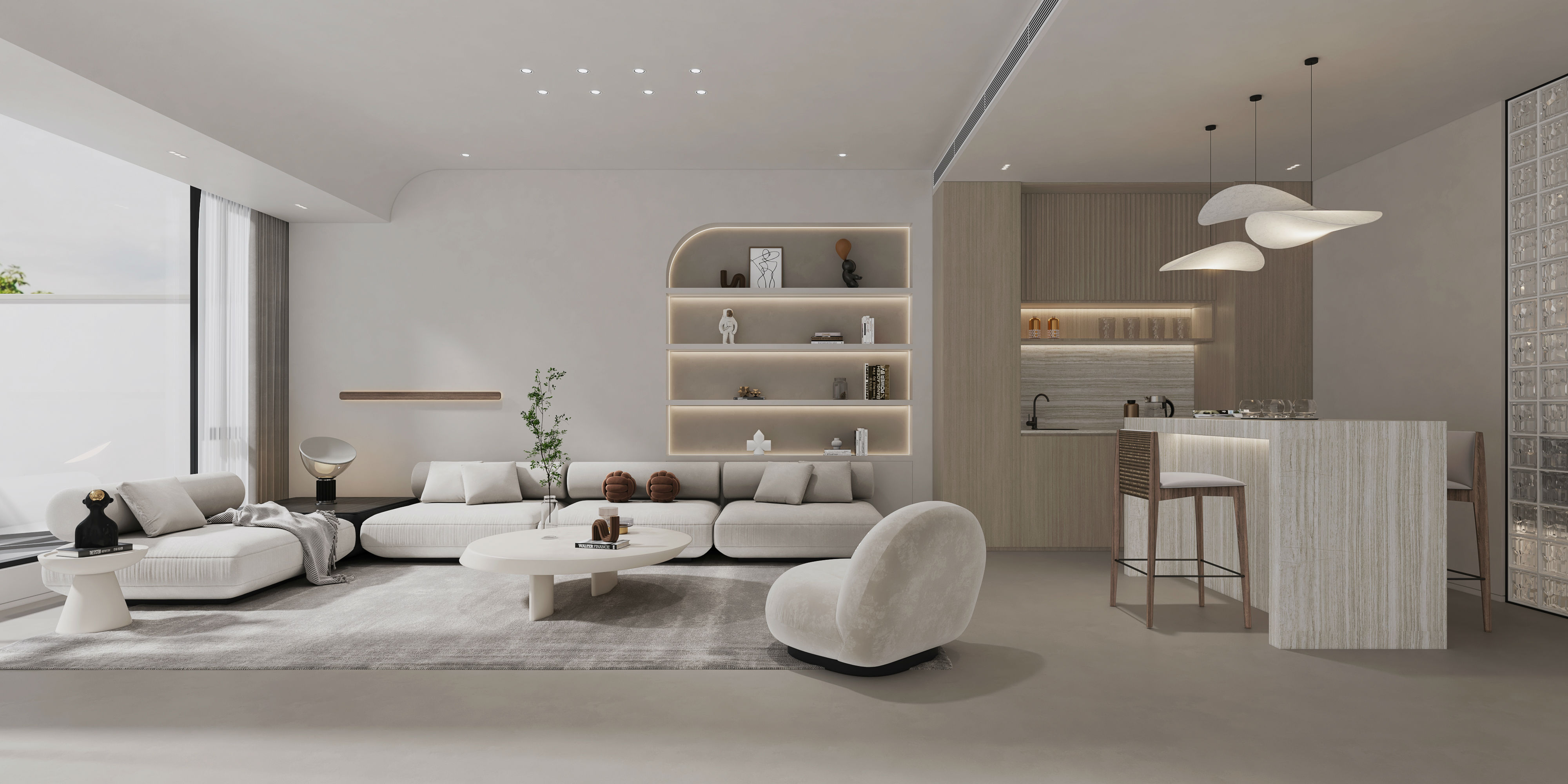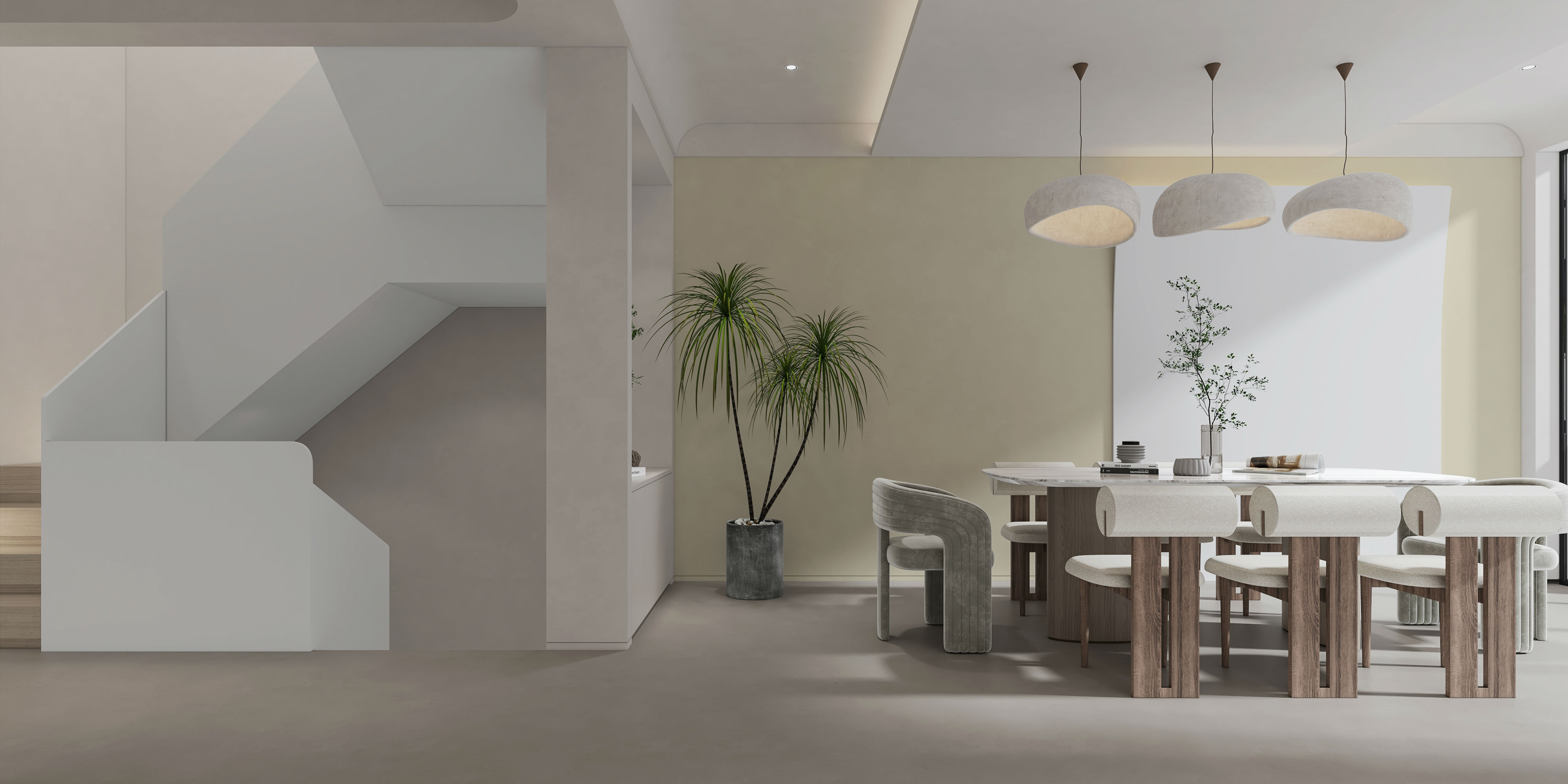 搭配浅色柜体、墙面,干净纯粹。搭配柔美的餐椅,让用餐区多了一分柔美。